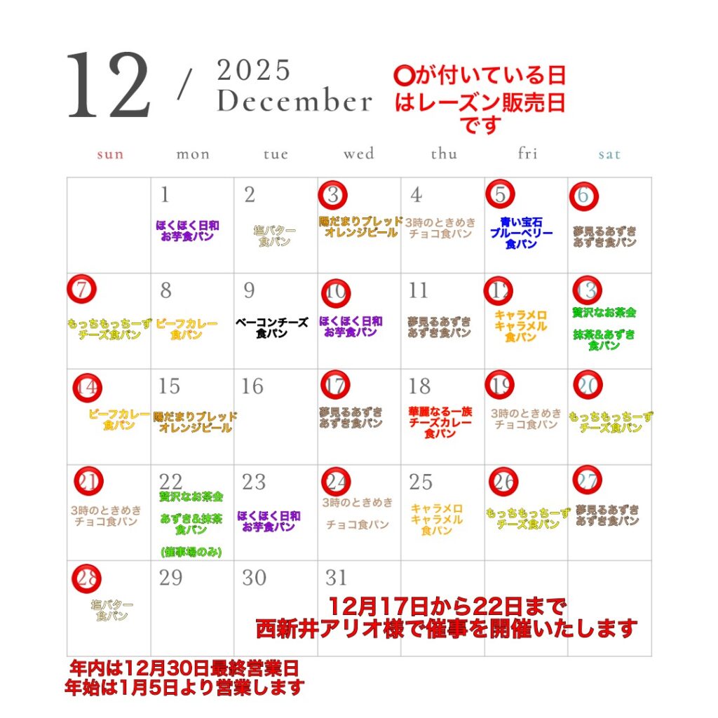 赤色の丸で囲まれている日は、午後のお愉しみを販売する日になっております。