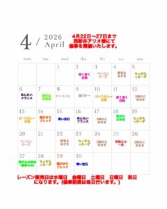 午後のお愉しみを販売する日は、(水曜日、金曜日、土曜日、日曜日、祝日)の13:00以降になっておりま…